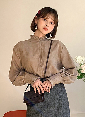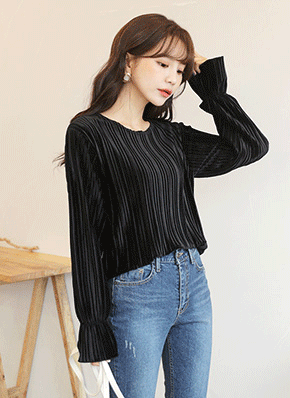 Frilled Sleeve Soft Velvet Blouse-Vb-t56410 |