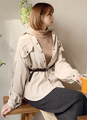 Corduroy Loose Fit Shirts-Vz-b56421 |