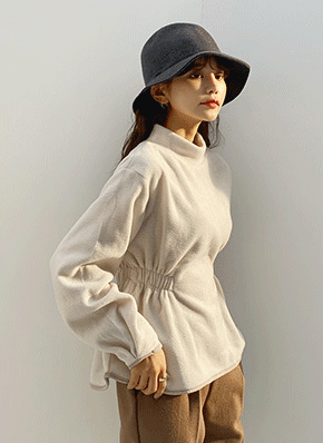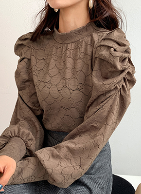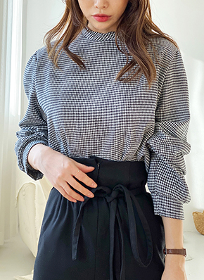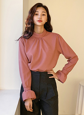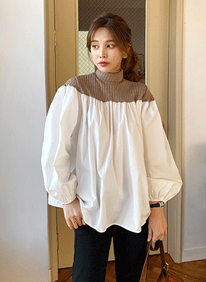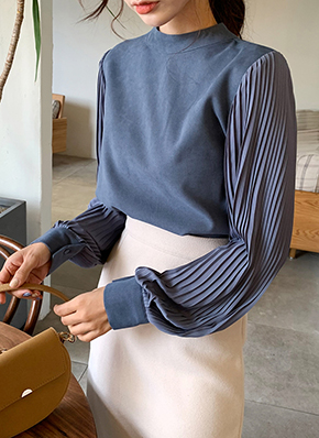 Pleated Sleeve Half Turtleneck Blouse-bb-t54689 |
