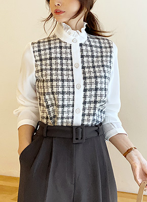 Basic Sleeveless&Frill Blouse Set-Vz-t56884 |