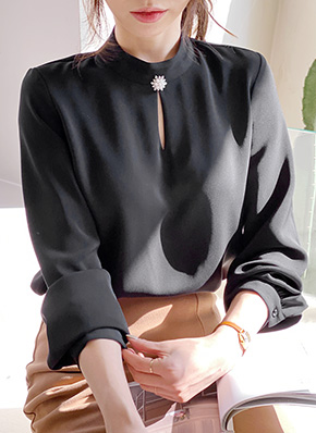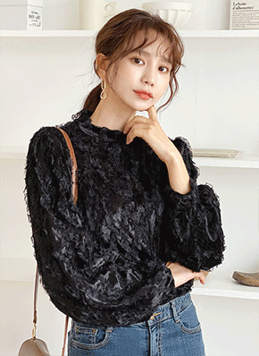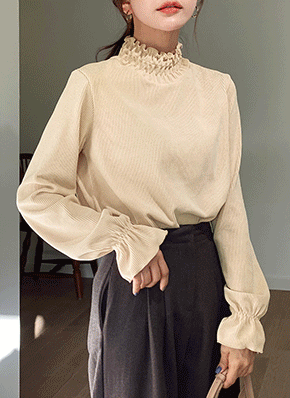 Pearl Sleeve Half Turtleneck Blouse-bb-t54690 |