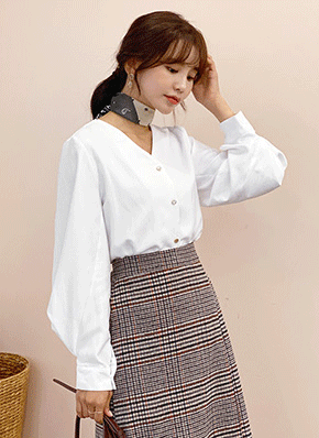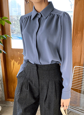 Shirring Lound Neck Button Blouse-Lb-t60092 |