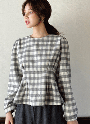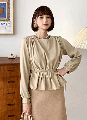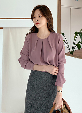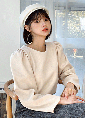 Puff Sleeve Round Neck Blouse-be-54730 |