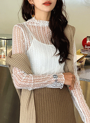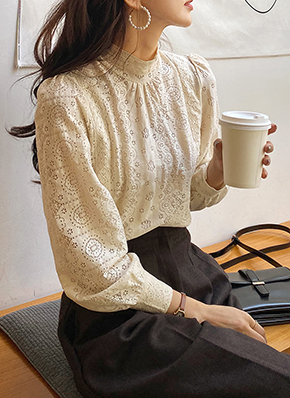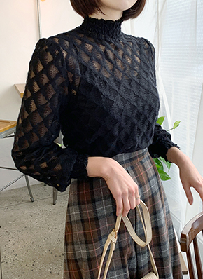 Laced Sheer Half Turtleneck Blouse-bc-t54826 |