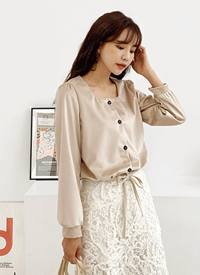 Unique Jewelry Button Puff Blouse-Vd-t56415 |