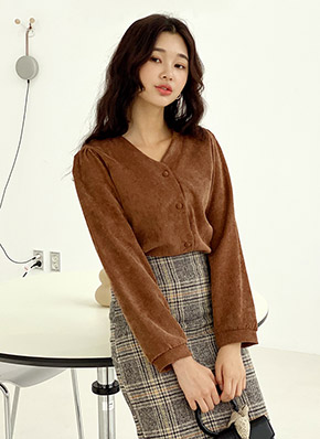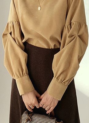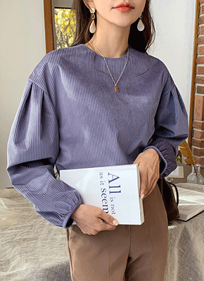 Corduroy Puff Sleeve Blouse-Rc-t54385 |
