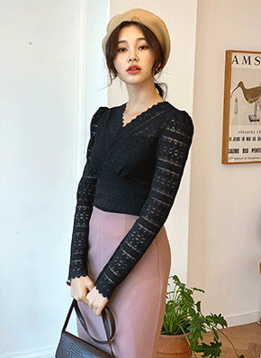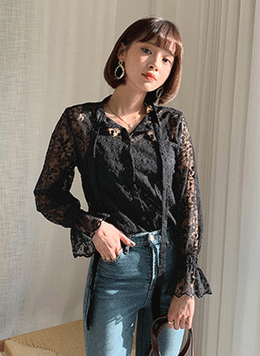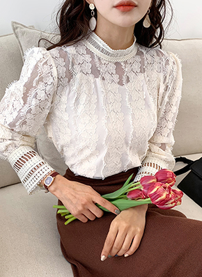 High Neck Sheer Lace Blouse-Vz-t56766 |