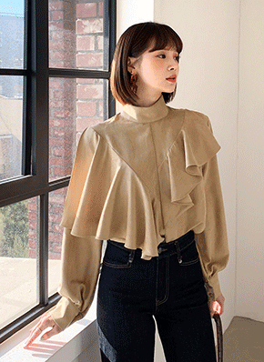 Frilled High Neck Soft Blouse-Vf-b56299 |