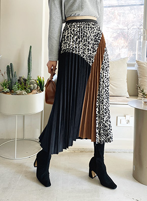 Elasticized Waist Leopard Knit Flare Skirt-Vd-b56778 |