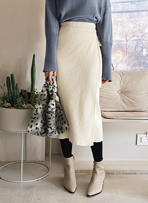 Wool Check Strech Waist Hem Slit Skirt-Va-t56828 |