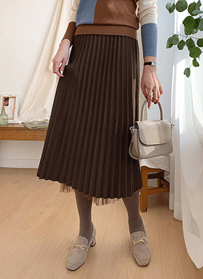 Elasticized Waist Uenven Pleats Skirt-Vz-t56777 |