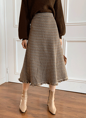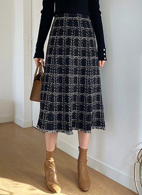 Wool Check Strech Waist Hem Slit Big Skirt-Vd-t56827 |