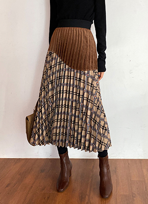 Checked Strech Waist Pleated Skirt-Rb-t54405 |