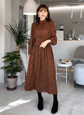 V-Neck Crinkled Floral Pattern Dress-Lz-b60173 |