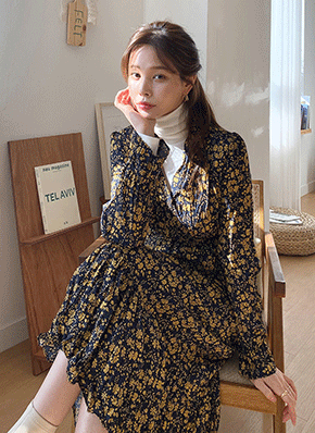 Floral Pleats Belt Set Dress -Ve-b56818 |