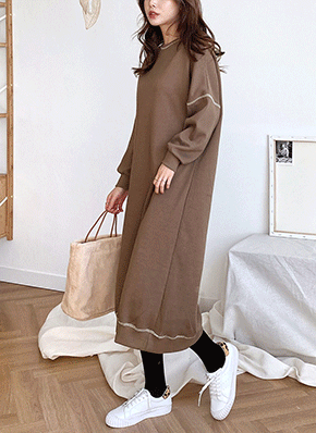 Pleats Contrast Turtleneck Long Dress-Vc-b56769 |