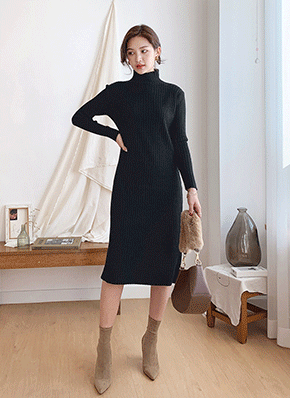 Turtleneck Soft Knit Long Dress-Vd-t56770 |