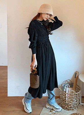 Flared Shirring Strap Long Dress-Rz-t54395 |