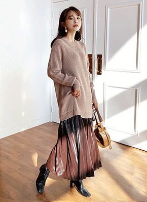 Pleated Hem Sweater Long Dress-Rd-b54398 |