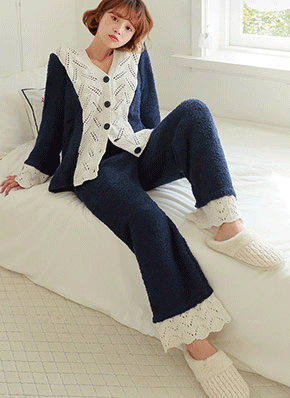 LB76# Knit Lace Pajamas-Mc-e43675 |