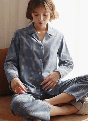 2308# Round Neck Check Pajamas-Mc-e43673 |
